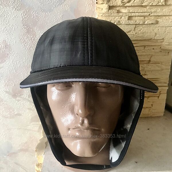 Зимняя бейсболка на флисе с ушами -авиатор - темная клетка-56см 58 см