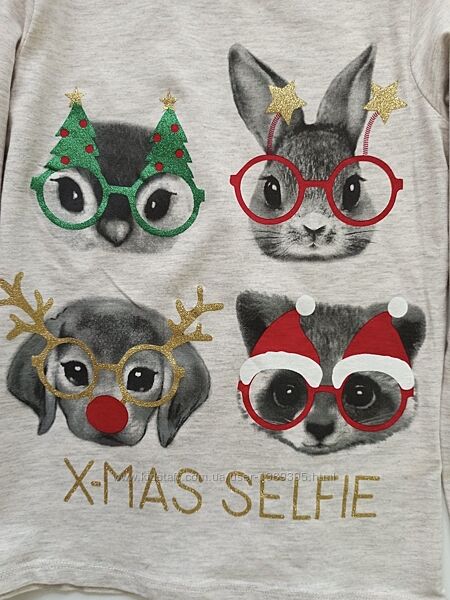 Новогодний(рождественский) лонгслив с милым принтом с глитерными элементами. Ткань-трикотаж,хлопок,бежевого цвета. В наличии размер 122-128 см., на 6-8 лет. Новые, с бирками и ценниками, куплены в фирменном магазине в Стамбуле.Обмен не интересует!