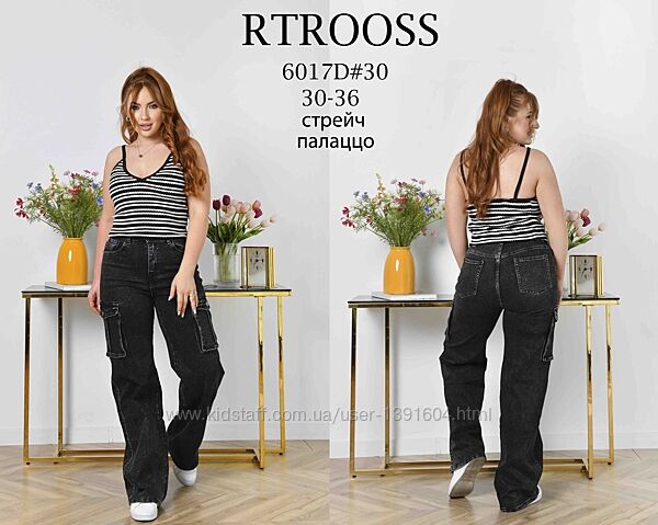 Джинси жіночі RTROOSS стрейчеві темно-сірі Модель палаццоСтейч котон