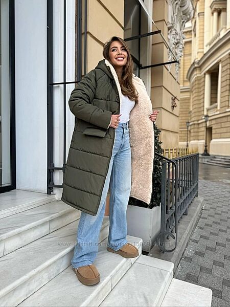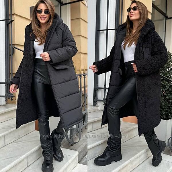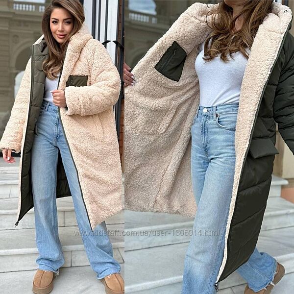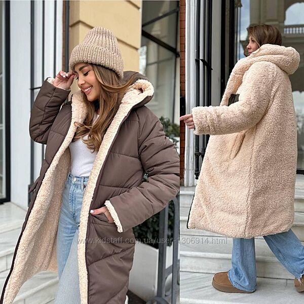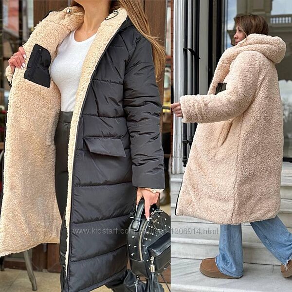 Супер тепла, двостороння курточка/шуба. Довжина 105 см