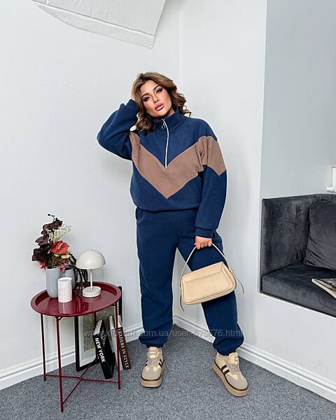 Подробное описание: р.50 до 60р. Стильний жіночий теплий флісовий костюм