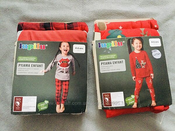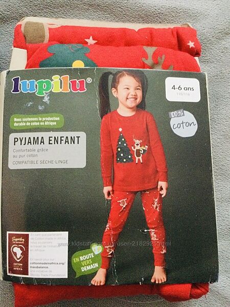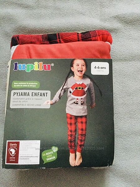 110-116 зріст Lupilu Новорічна натуральна Піжама. 100% cotton! Домашній комплект на манжетахвсі бірки и повністю упаковка!