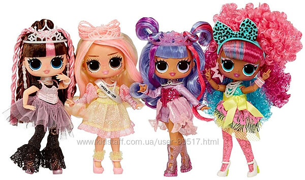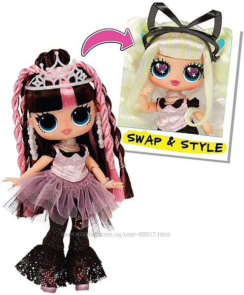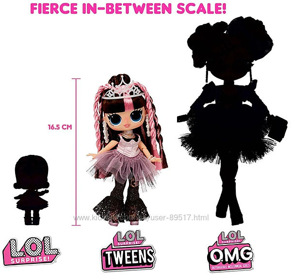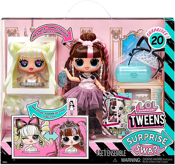 1 лялька серії Tweens,1 змінна голова з зачіскою,пара сережок,4 комплекти одягу,1 пара взуття,10 аксесуарів,1 підставка для ляльки,1 гребінець.Зберіть усю колекцію L.O.L. SURPRISE!
