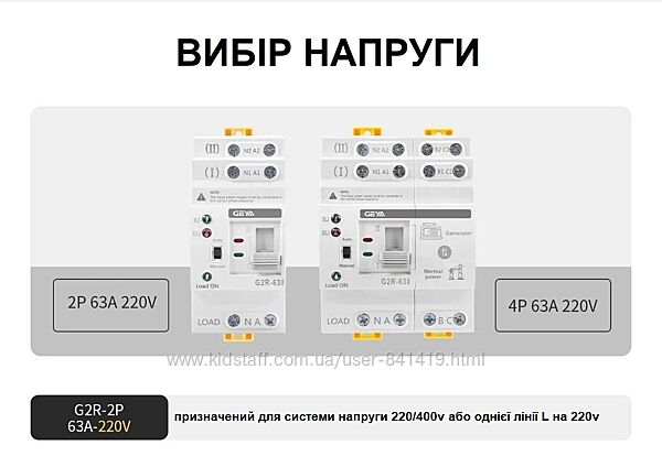 Автомат введення резерву GEYA АВР G2R 2P 63А ats однофазнийтелефонуйте