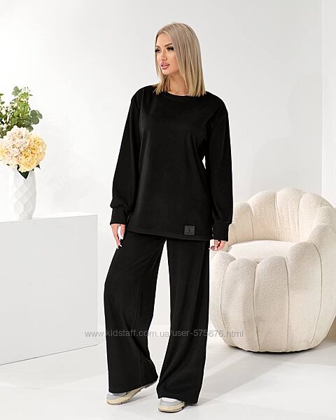 Базовий костюм, теплий . Кофта подовжена з розрізами по боках. Штани прямі , з кишенями, пояс на резинці