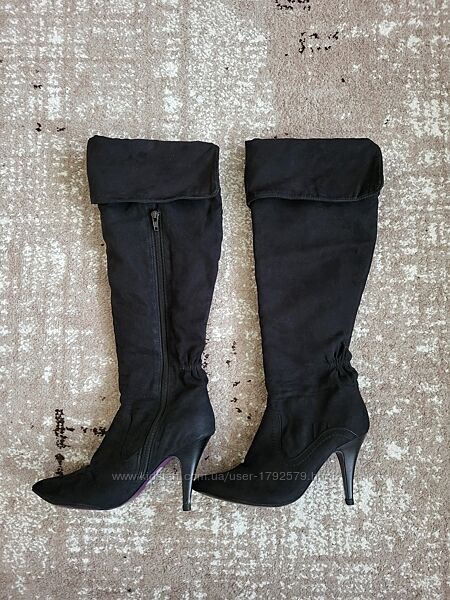 Подробное описание: Замшеві ботфорти tamaris trend, чорні ботфорти на каблуку 36
