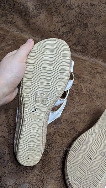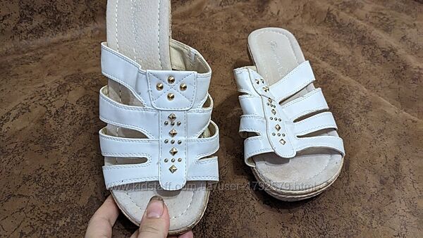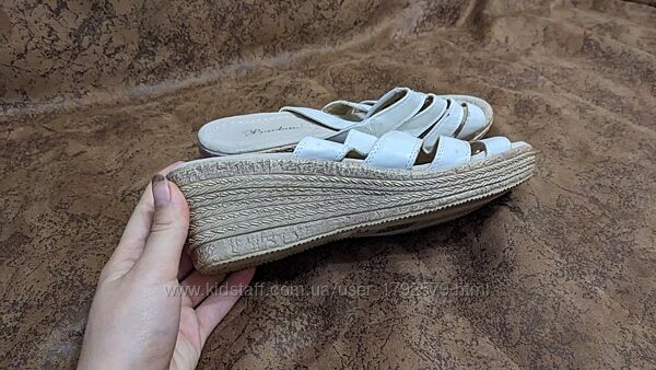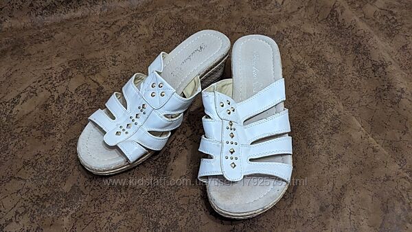 Білі шльопанці шкіряні, жіночі шльопнці на танкетці, шльопанці ремінці