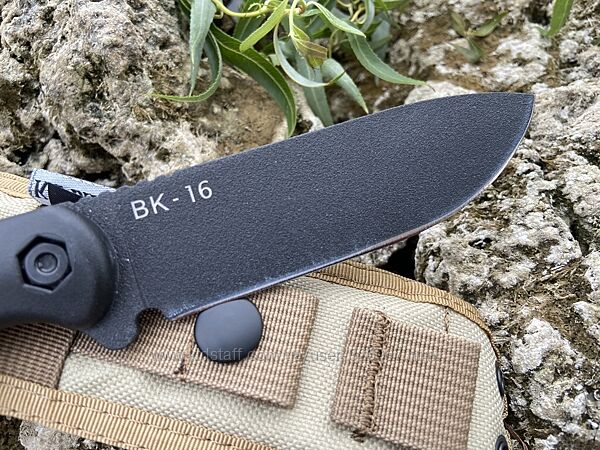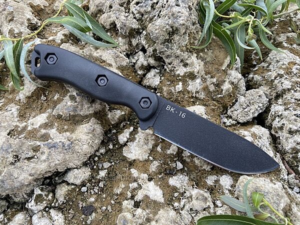 Спроектований Ітаном Беккером, ніж для виживання BK16 із серії Becker Knives, виготовлений компанією Ka-Bar.Нож з конструкцією full tang і клинком з профілем drop point виготовлений з цілісного шматка Cro-Van марки 1095 сталі з твердістю 56-58 HRC. Клинок додатково покритий матовим покриттям чорного кольору для запобігання відблисків і корозії.
