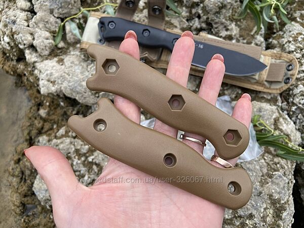 У комплект входить тактичний чохол для ножа з вшитою кишенею, виготовлений з нейлону кольору desert Tan та запасні підкладки кольору coyote brown.