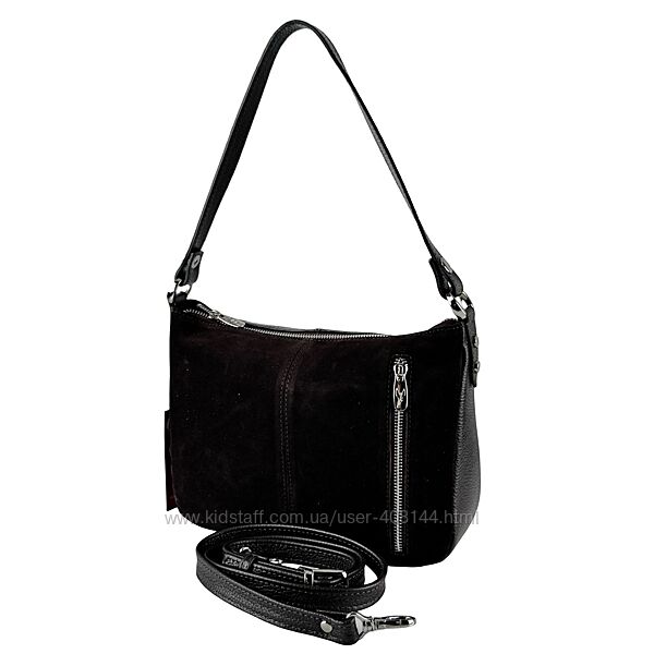 Сумка жіноча шкіряна із замшевою вставкою Vito Torelli 1068 6010/1210 темно-коричнева✔️ Матеріал: натуральна шкіра зерниста - флотар, на лицьовій стороні замшева кишеня