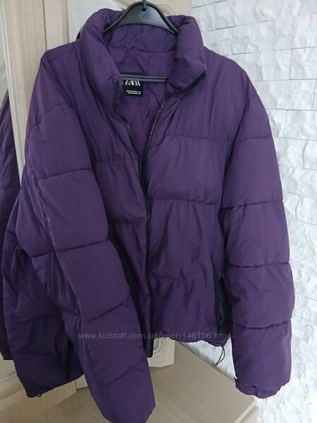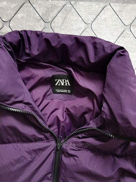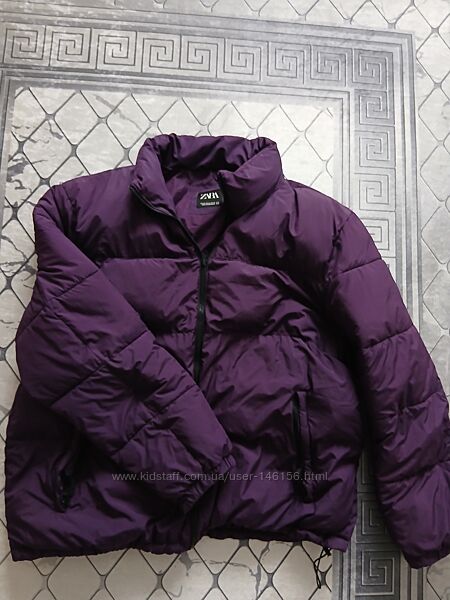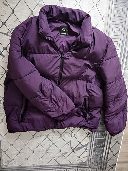 Жіноча тепла куртка від Zara в гарному фіолетового кольорі. Знизу є затяжки. З недоліків місцями є збитість але вона як зефірка тому візуально не видно.Ог напів 66см довжина 70см Довжина рукава 80см