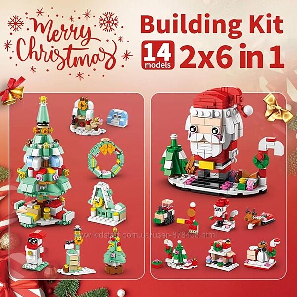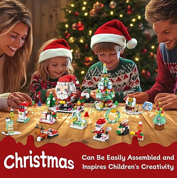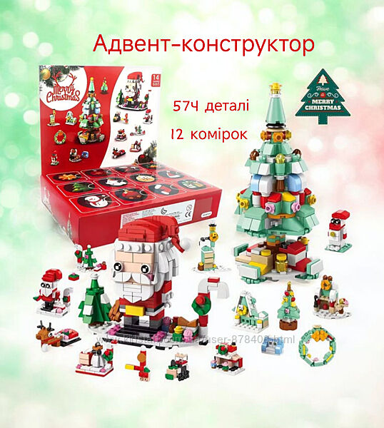 Різдвяний адвент-конструктор "Санта і Ялинка", 574 деталі✨ Всередині ви знайдете