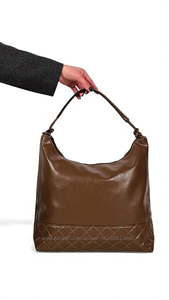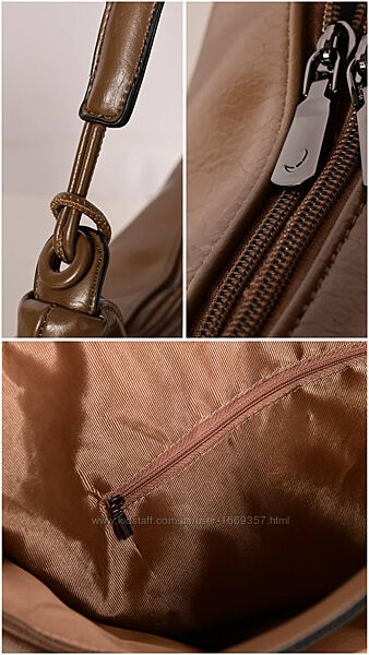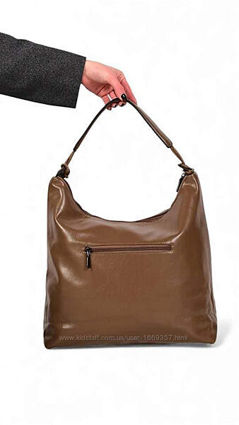 Стильна жіноча містка сумка кольору хакі зі штучної шкіри - це ідеальне поєднання елегантності та зручності. Сумка має два містких відділа на бискавці для зберігання необхідних речей. Усередині розташовані дві кишені, одна з яких на блискавці, що дозволяє організувати простір максимально ефективно. Додатково є кишеня на блискавці на задній частині сумки, що забезпечує швидкий доступ до дрібниць.