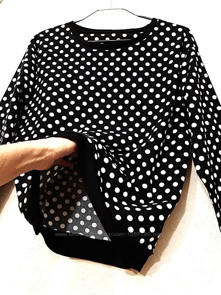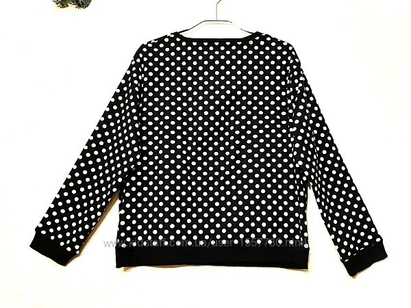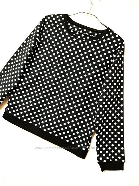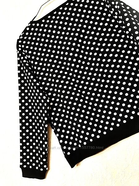 Лонгслив/футболка/кофтинка велюрова жіноча, для дому, чорна в білі горохи, довгі рукави, демі/зима.Бренд Marks & Spencer.