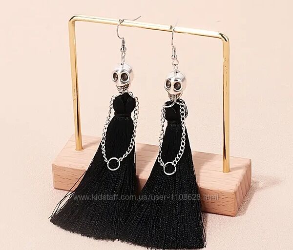 Сережки нареченої-скелетки на хеллоуїн з ниток