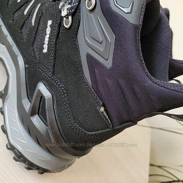 Верх замша + текстиль Мають мембрану Gore-Tex Носочки та п´ятка захищені та ущільнені Обідочки та язичок - м´якенькі Устілка анатомічна, з бортиками Фісуються за допомогою шнурків + 3 люверси вверху БОМБЕЗНА, гумова підошва із надійним протектором Лямка на задніку для зручного взування Колір чорний Виробник Словаччина