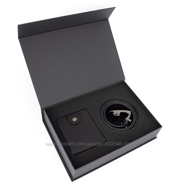 Ідеальний вибір для подарунка чоловікові. Цей стильний та практичний набір створений, щоб підкреслити статус та смак свого власника. У комплекті ідеально поєднуються два класичні аксесуари, які незамінні у повсякденному житті. Чорний шкіряний гаманець на кнопці – компактний та зручний, створений для надійного зберігання карт, купюр та монет. Виконаний із натуральної шкіри Crazy Horse. Розмір:11,5 х 9 х 1,5 см. Шкіряний ремінь чорного кольору з автоматичною пряжкою– класичний аксесуар, який гармонійно доповнить будь-який образ. Виготовлений із натуральної шкіри. Ширина ременя – 3,3 см, довжина – 135 см із можливістю самостійного укорочування. Набір постачається в елегантній подарунковій коробці на магніті. Стильне та практичне рішення, готове до вручення на будь-яке свято, будь то день народження або важливий життєвий момент. Розмір коробки – 27 х 19 х 6 см.