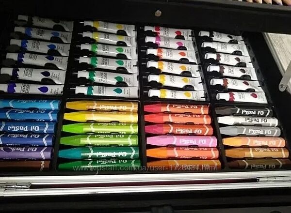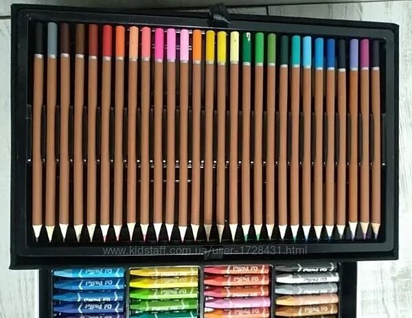 145 предметів, включаючи фарби (акварель і гуаш), олівці, фломастери, воскові крейди, пензлі та інші не залишать байдужим навіть дорослого.