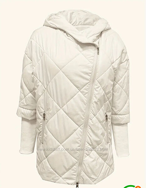 Куртка нова дуже зручний фасон, колір молочний,манжети еластичні, наповнення синтепон, тканина поліестер.Розміри виробу