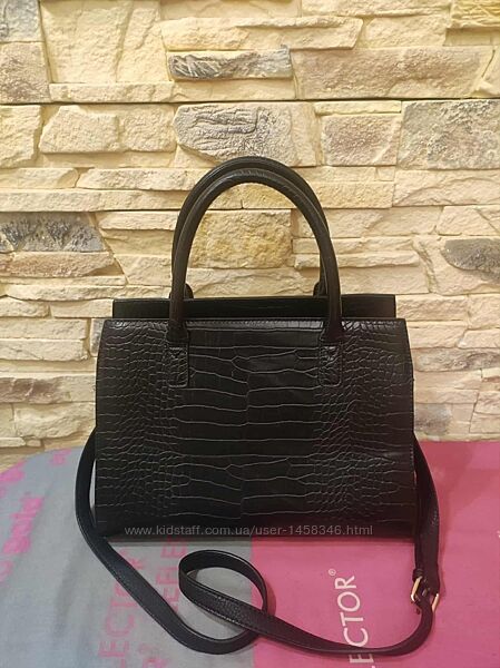 Якісна,стильна, елегантна,вмістка сумка відомого преміум англійського бренду Carvela , з тисненням під шкіру рептилій,три відділення , стан нової, заміри: довжина 33 см, ширина дна 12 см, висота 26 см,довжина ручок 37 см,довгий ремінець 110 см.