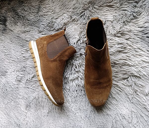 Фірмові черевички-челсі Gabor, виробництво Словакія.Верх - натуральна замша. всередині із легким утепленням (текстильна підкладка), устілка Comfort.