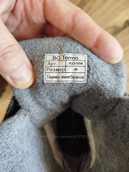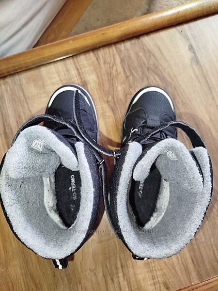 Зимові термо черевики B&G на хлопчика. Стан ідеальний (вдягали лише кілька разів), без нюансів і дефектів. Устілка до загину - 23 см. Можна використовувати без устілки (під устілкою ще є хутро), що збільшить розмір на 0,5см.Колір чорний