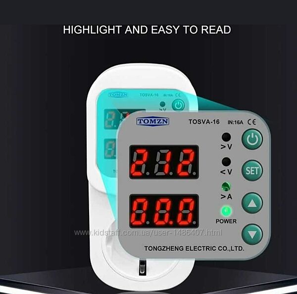 Подробное описание: TOMZN 16А Захисне реле напруги в розетку холодильник, кондиціонер