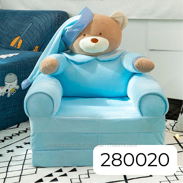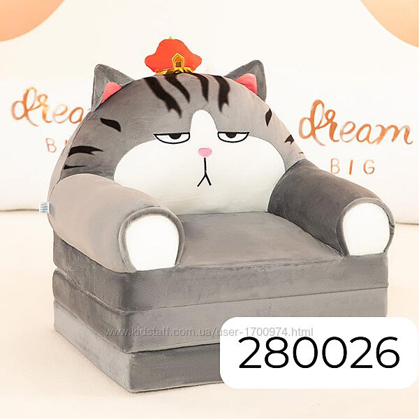М’яке дитяче крісло-ліжко у вигляді героя створює затишний куточок для ігор, читання та денного сну. Низька посадка, широкі підлокітники та підтримуюча спинка допомагають дитині самостійно й безпечно сідати і вставати.