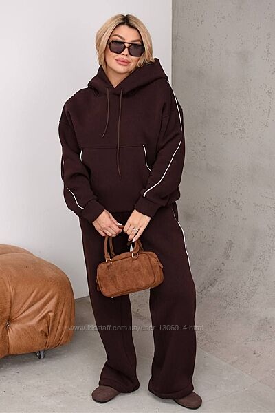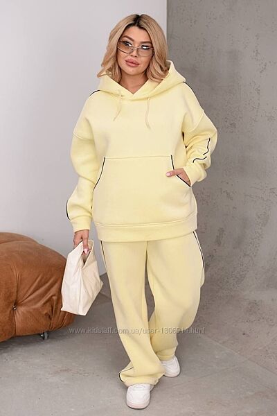 Кофта кенгуру з капюшоном. Штанці палаццо, низ регулюється регуляторами. Шви оброблені х/б кантом.