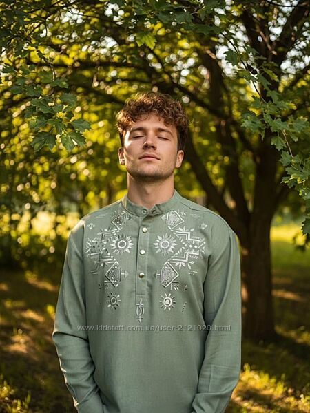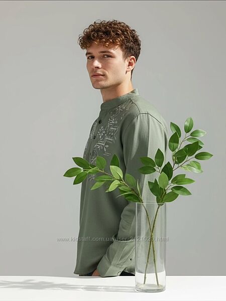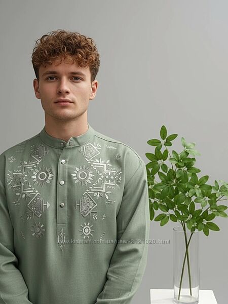 Вишиванка оливкова чоловіча оливкова лляна