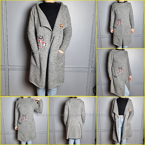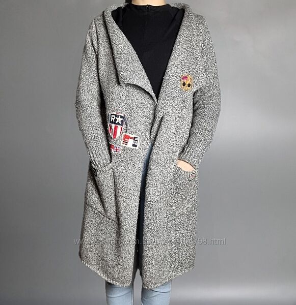 Подробное описание: Кардиган сірий жіночий з нашивками