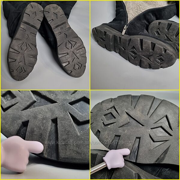 Присутні дефекти: тріщини на підошві(потрібен ремонт/проклейка), та потертості замші (потребує оновлення або чищення) , (деталі на останньому фото).