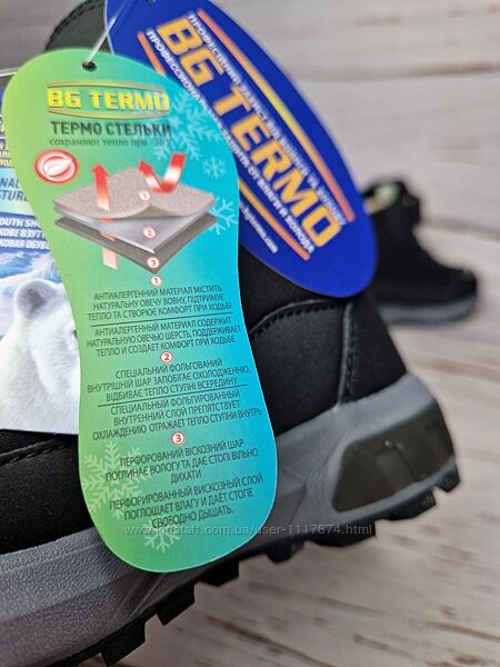 Підошва в термочеревиках B&G-Termo: забезпечує чудове зчеплення з будь-якими видами поверхні + має високу стійкість до деформацій, низьких температур, а також гарантує водонепроникність.