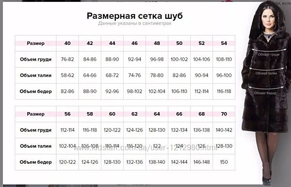 Див. фото зі стандартними вимірами шуб за розмірами.