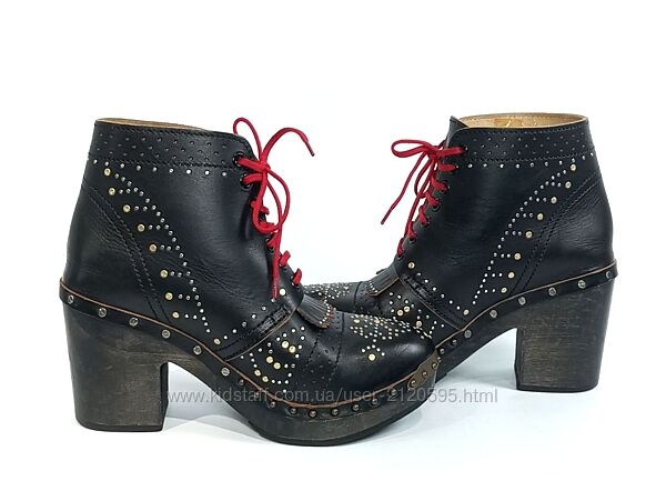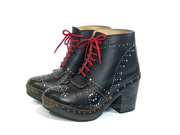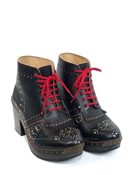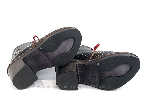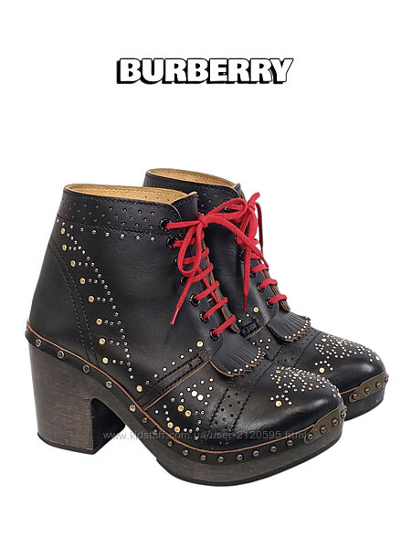 Кожаные ботильоны Burberry Black Studded Leather Antrim Fringe Detail Block Heel Clog Оригинал. Состояние идеальное. Р. 38,5-39 стелька по факту 25см. Производитель-Италия.Эти потрясающие ботильоны – просто маст-хэв. Эти ботильоны-сабо от Burberry изготовлены в Италии из высококачественной кожи. Эти чёрные ботинки украшены заклёпками, бахромой и контрастными шнурками. Каблуки-сабо высотой 8,5 см, платформа 2см. кожаная подкладка, стельки и подошва из резины и кожи.