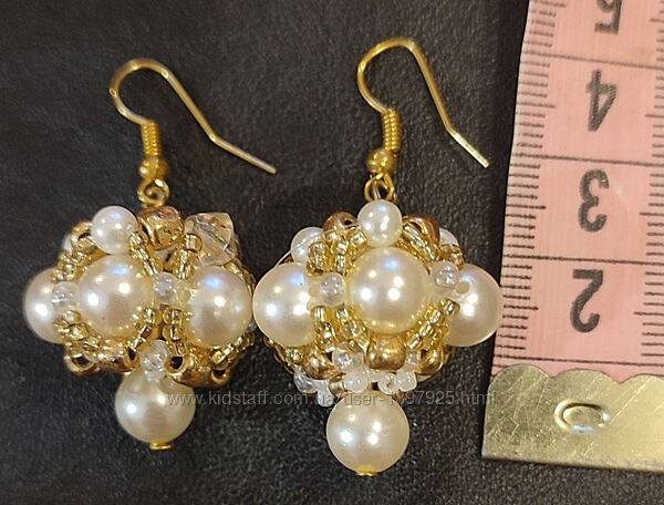 Кульчики з штучних перлів та бісеру. У формі нерівної кулі, діаметром 2.5 см. Загальна довжина - 4 смДругие объявления продавца
