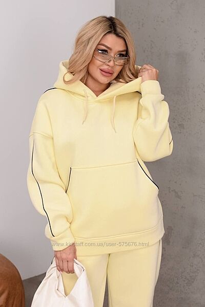 Кофта кенгуру з капюшоном. Штанці палаццо, низ регулюється регуляторами. Шви оброблені х/б кантом.