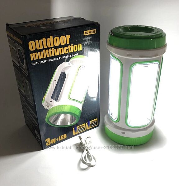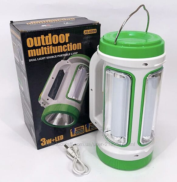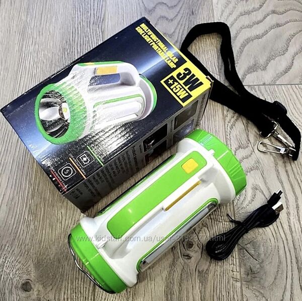 Яскравий переносний прожектор, який стане у пригоді вдома, на роботі, у гаражі чи на відпочинку. Працює від вбудованого акумулятора та може заряджати телефон через USB. Корпус міцний, легкий та зручний у перенесенні.Переваги
