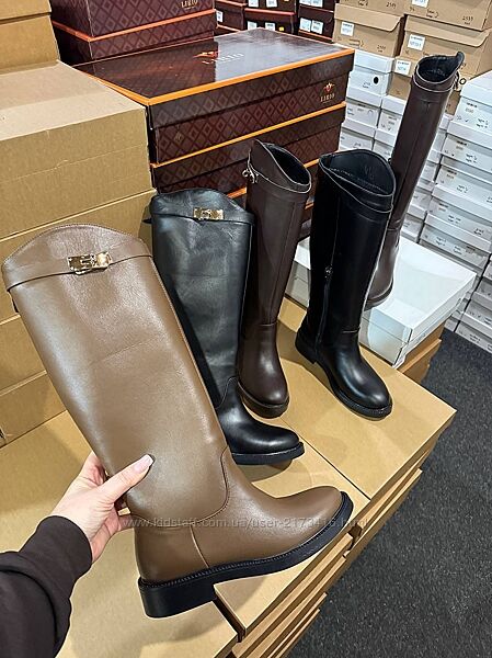 Подробное описание: Зимові шкіряні чоботи жокейки з фурнітурою 3 кольори