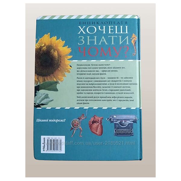 У твоїх руках, юний читачу, унікальна енциклопедія: вона побудована за принципом «Запитання Р відповідь», і відповість на безліч твоїх «Чому?» зрізних галузей знань. Книжка охоплює розділи «Всесвіт», «Планета