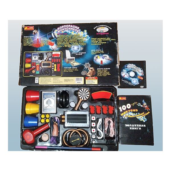 Повний набір для початківця фокусника, який містить усе необхідне для вивченнята виконання 100 різноманітних трюків. Це чудова можливість розвинути