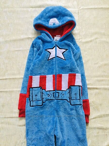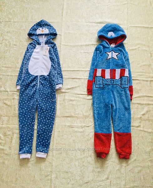 7-8 рок Disney. Флісовий кігурумі Пінгвін і Капітан Америка. Супер - тепла піжама . м"якенький комбінезон.нова з бірками
