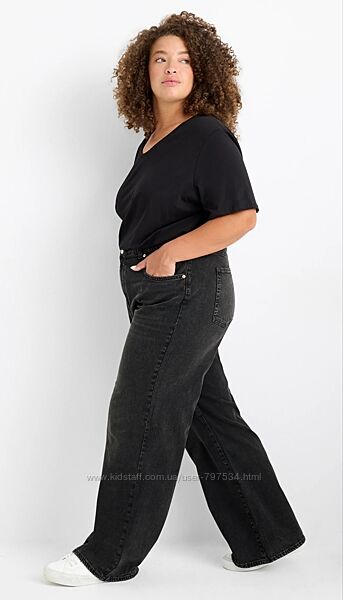 Широкі жіночі джинси з високою талією C&A.Колір: темно-сірий.