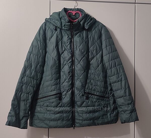 Куртка жіноча демісезонна Meajiateer. Колір: зелено-блакитний. Колір більш близький до першого фото. Розмір: 5XL (54-56). Верх: поліестер 100% Підкладка: поліесьер 100% Наповнювач: біопух. Капюшон знімається, по капюшону і по низу виробу йдуть куліски. Заміри по спинці: Ширина плечей - 46 см; Довжина рукава від плеча - 65 см; Довжина рукава (знизу) від пахви - 46 см; Півобхват грудей - 62 см; Півобхват талії - 60,5 см; Півобхват куртки знизу - 65 см; Довжина спинки від коміру- 68 см.Другие объявления продавца