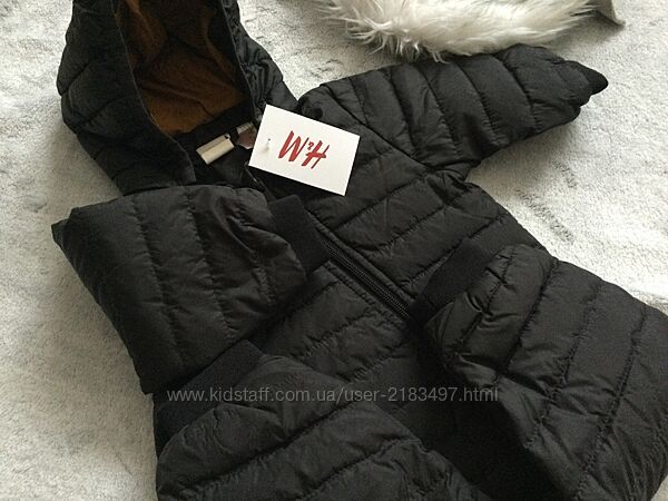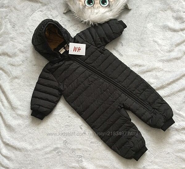 2-4 міс 62 зріст, H&M комбінезон демі. всередині трикотажна підкладка. Застібка - блискавка.Зверху м"яка плащівка- вітронепродувний матеріал. Наповнювач - синтепон. капюшон відстібається.