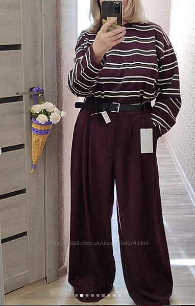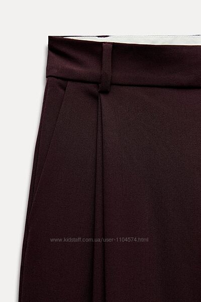 Штани бургунді zara з подвійними защіпами розмір XXLВисока посадка. Шльовки, стрілки. Бічні кишені, задні прорізні кишені. Застібка-блискавка, внутрішній гудзик та металевий гачок.