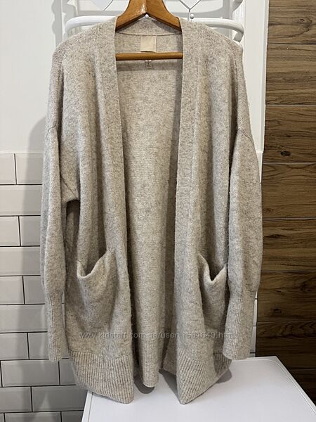 Кардиган вовняний ( в складі 30% альпака, 20% вовна) з преміум лінійки H&M. Стан нового. Рукав можна регулювати він призбирається через подовжений манжет.Заміри: