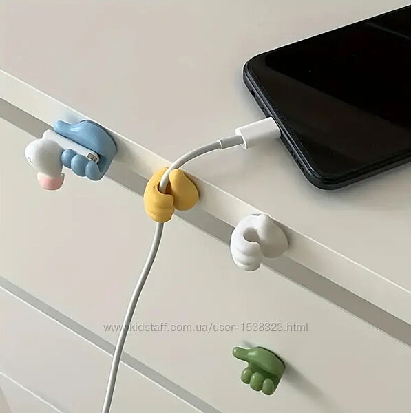 Ціна за набір. Це максимально зручно 👌 Набір з 5 організаторів/тримачів для кабелів у формі долоні, у наборі випадкові кольори – самоклеючі гачки без свердління, ідеально для організації дому, підходять для кухонних приладів та аксесуарів у спальні, органайзер для столу та шухляд для зберігання вдома, Компактний дизайн, Гачки для економії місця