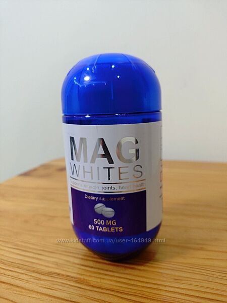 Mag Whites - це препарат магнію з Єгипту, який містить гліцинат магнію в хелатній формі. Його приймають для поповнення дефіциту магнію, підтримки нервової системи, м´язів і серця, і навіть боротьби зі стресом.