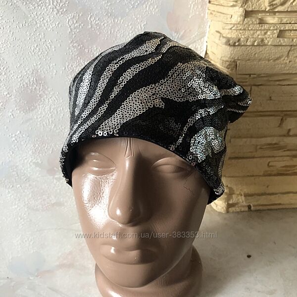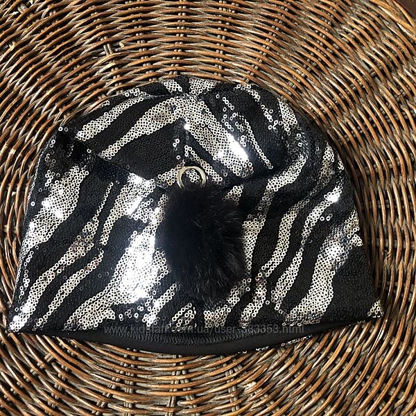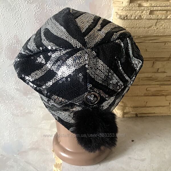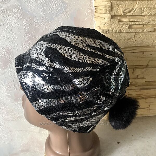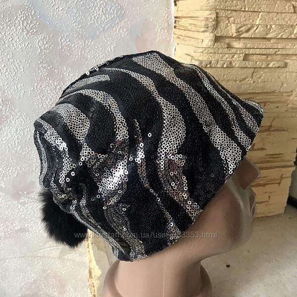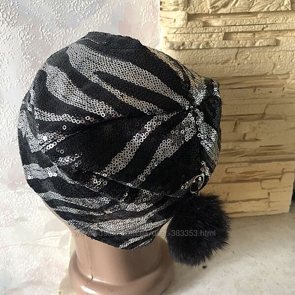 Теплая шапочка на флюсе из мелких серебристо черных пайеток размер свободный Намхолодную погоду Декор меховой хвостикДругие объявления продавца